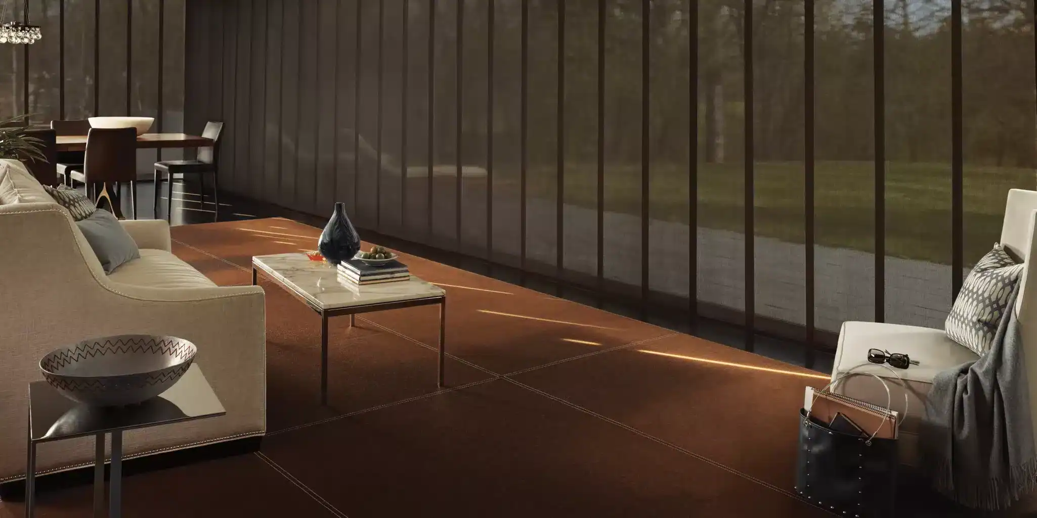 Skyline® Gliding Window Panels offer a contemporary solution for large windows and sliding glass doors. Featuring wide fabric panels and streamlined tracks, they create clean lines and a striking visual effect. Open panels stack neatly to the side for an unobstructed view, while closed panels provide a smooth, unified look that elevates your interior design. Combining style with function, Skyline® panels deliver both light control and privacy for any space in your Calgary home.