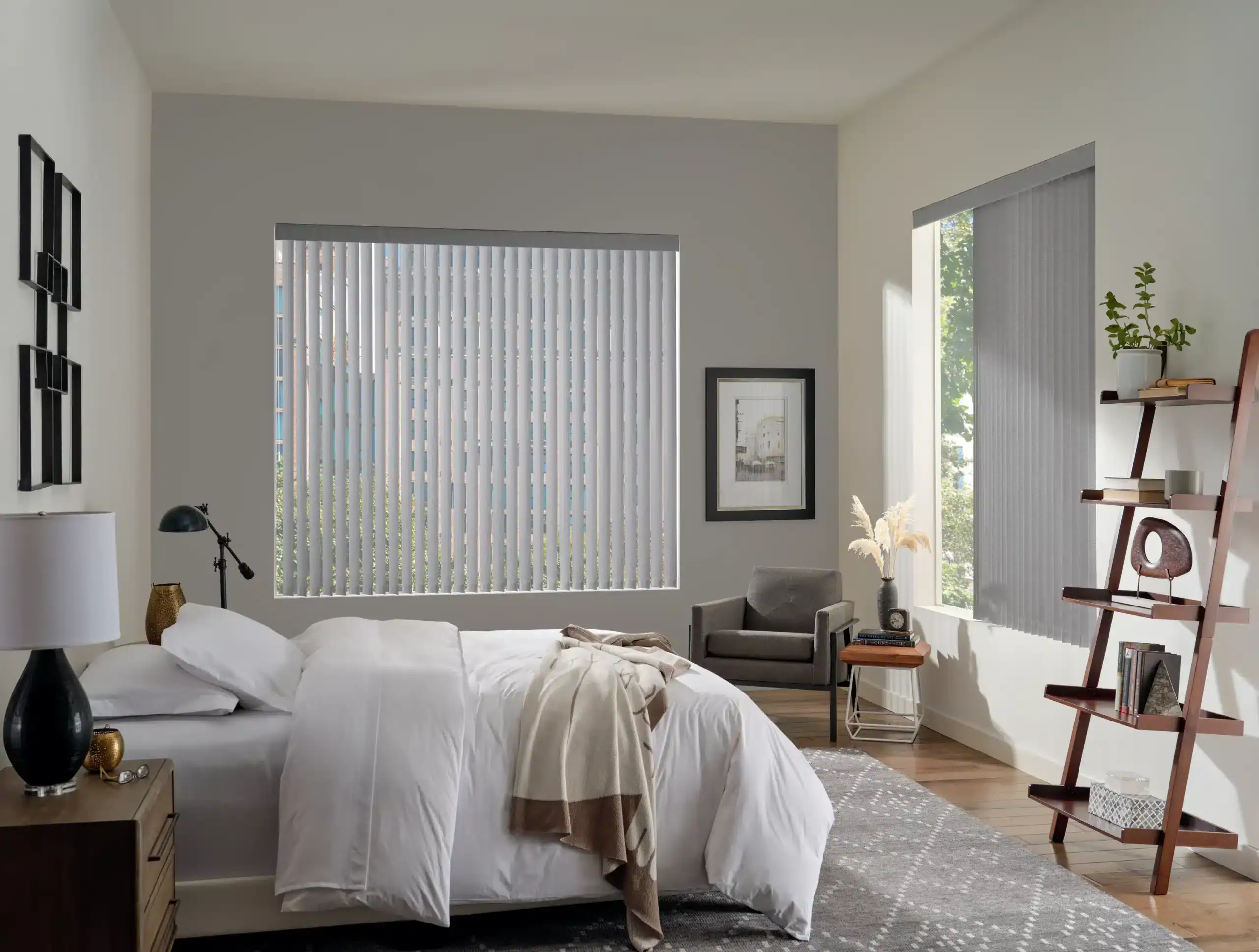 Somner® Custom Vertical Blinds are crafted for smooth operation and flexible light control, making them ideal for large windows and sliding glass doors. Available in fabric, vinyl, and aluminum, these blinds can be customized to complement any décor. From soft neutrals to bold prints and metallic finishes, Somner® allows you to create a stylish look that fits your home while delivering reliable, long-lasting performance.