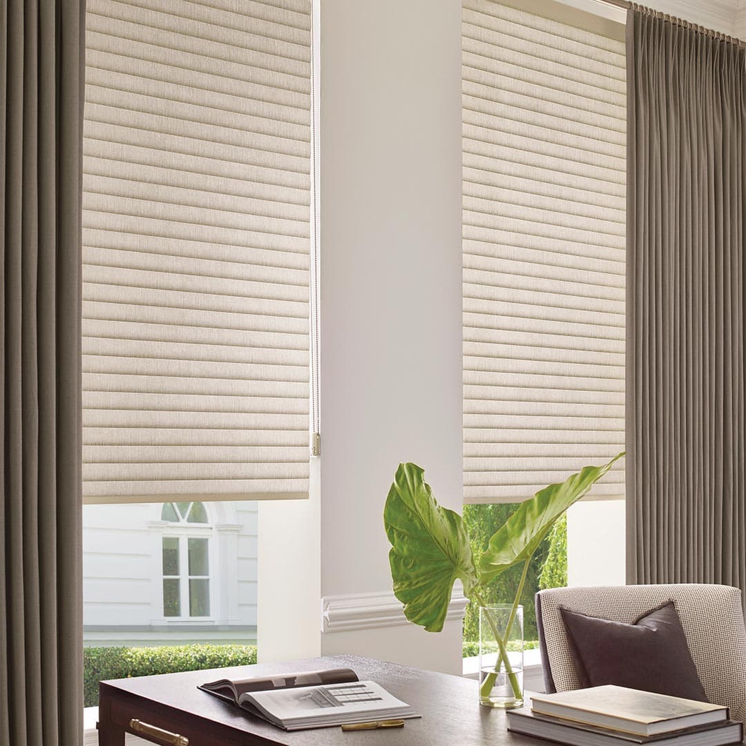 Sonnette® Cellular Roller Shades combine the sleek design of a roller shade with the insulating benefits of a honeycomb structure. Their softly curved, dual-layer fabric diffuses natural light while helping regulate indoor temperatures, offering year-round comfort and enhanced energy efficiency. With a modern, streamlined appearance, Sonnette® Shades are an ideal choice for Calgary homeowners seeking a perfect balance of style and performance.
