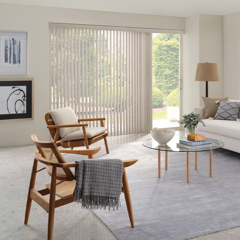 Vertical Shades provide a clean, streamlined look for large openings such as patio doors and expansive windows. Available in fabric, vinyl, or woven textures, they offer excellent light control and privacy while gliding smoothly along a track. Practical and durable, these shades can be customized with a variety of colors and finishes to complement any interior. Cordless or motorized systems add convenience and safety, making them ideal for modern homes and spaces with wide glass expanses.